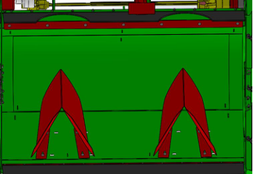 3、导流隔板技术:导流隔板沿薯垄的顶部运行,其将切除的秧苗和杂草分流至两边的垄沟里,利于后期收获机的收获。